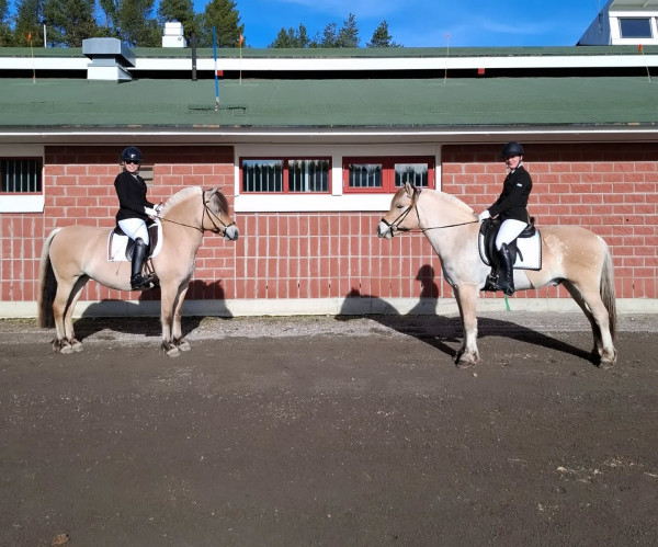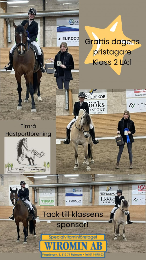 Årsdebuten på Vivan gick av stapeln hemma i Timrå i strålande solsken. Vivan var som alltid fantastisk att ha med sig. Jättebra att lasta och köra, står lugnt då man sadlar och väldigt lyhörd och fin inne på tävlingsbanan. LB'n kändes jättebra, mycket säkrare än då vi red den i fjol. Hela 70.33% fick vi och en seger av 17 ekipage. I LA-debuten fick vi som väntat ett par missar men jag var jättenöjd med grundkänslan och hur hon jobbade med mig. Det blev trots missarna fina 64.72% och en andraplacering av 7 starter. Jag är så glad över dagen. Vi rider ju ute i alla väder och får anpassa oss efter underlaget. Men utgångspunkten inför året känns minst sagt lovande. Fina fina Vivan vilken tur att jag inte sålde henne för 1.5 år sen. Jag tror hon är den häst jag tävlat som passar min ridning allra bäst. Och på lördag går Izabells årsdebut av stapeln, håll tummarna!
