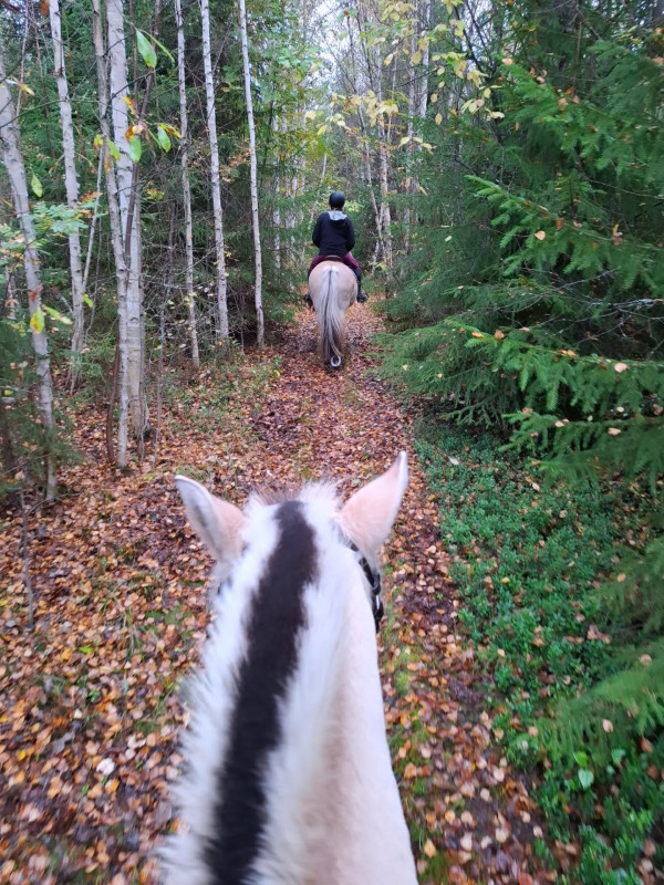 Jag var därför med på Tingla som faktiskt briljerade i de flesta grenarna och vi lyckades vinna hela rallyt! 2019 vann jag det på Lusse och nu fick Tingla och jag äran att ta hem segern. Ellinor var med på Vivan och de hamnade i mitten av startfältet. Jag tycker de gjorde det jättebra. Många av momenten var nya för Vivan, hon är ganska oerfaren över lag och Ellinor har inte ridit henne så många gånger. Vi hade en jättefin dag tillsammans. Det är roligt att göra nåt annat med hästarna och att rida på de fina vägarna i Jättendal är en liten nostalgi-tripp i sig. Jag tänker ofta på Lusse, att så här års när kylan började komma brukade han vara pigg och naturen färgsprakande. Jag saknar de turer vi gjorde tillsammans.