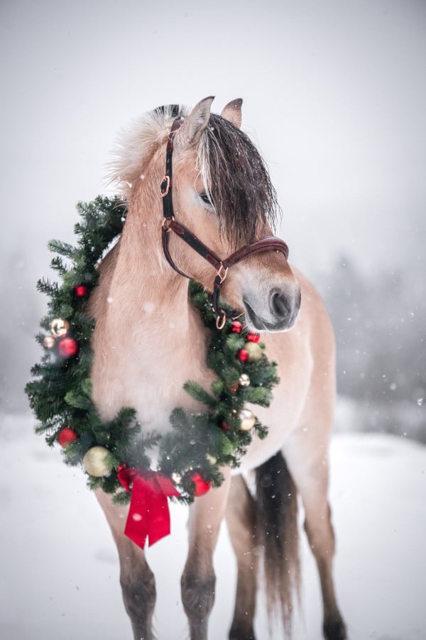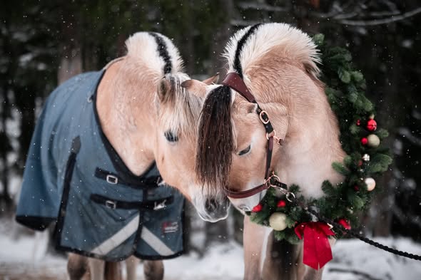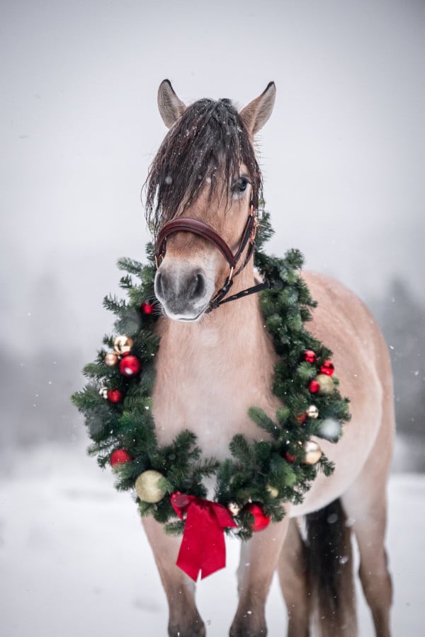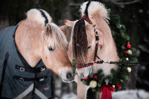 Nu hoppas jag vi ska få nån ordning på ridbanan hemma som varit blankis. Det snöar och blåser rejält utanför fönstret men det gäller att få eländet att fästa i isen också. Den som lever får se, men målet är att gå ut i årets första tävling v 12 så det är dags att börja trimma nu. Jag avslutar med de fina julkort Linnea Gustin tog på Krona och Irma för några veckor sedan. Visst är de fantastiska!