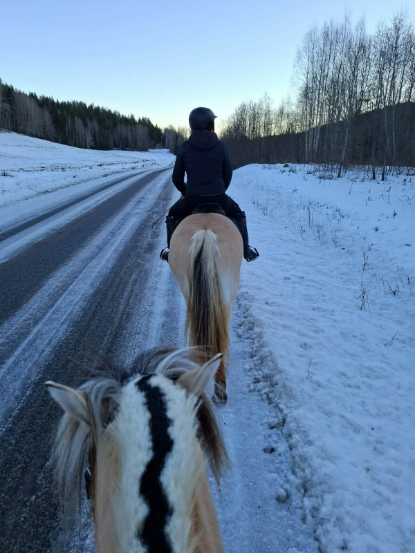 Vi är ganska utsatta i Norrland med ca 40 mil till nattöppen klinik och distriktveterinärerna som ska täcka upp ett helt orimligt stort område. Dessutom med otroligt tuffa arbetsvillkor och en del veterinärer som inte alltid är helt bekväma med att behandla häst. Jag är så tacksam att det dykt upp några privata aktörer som gått den skolan och är vana att arbeta i fält. Jag hade läst på sociala medier att Frida Bergman erbjöd jour nu i mellandagarna och tog kontakt och hon kunde komma inom en timme. Vilken lättnad! Det tog ett tag innan koliken släppte helt, man märkte att hon var bättre och sen sämre igen. Trots en massa promenerande och en herrans massa mashvatten som hon gärna drack när hon mådde bättre så behövdes ytterligare en behandling ett dygn senare. Tingla har stor integritet och är på det sättet en lite knölig patient men hon satte kanyler och sondade hänsynsfullt och tryggt så Tingla fick en bra upplevelse och framför allt blev bra i magen igen. Så otroligt tacksam över hjälpen med min drottning. Kan varmt rekommendera Frida. Det är verkligen totalt dränerande på energi med sjuka djur och maktlösheten att inte kunna få hjälp pga avstånden som gör att ett mindre akut tillstånd kan sluta illa pga det. Jag vet inte om det hjälpt ifall Lusse fått hjälp snabbare i våras men han fick vänta flera timmar på vård och när vi sedan kunde konstatera att det aldrig skulle gå fick han ligga orimligt länge i väntan på en veterinär som kunde avsluta. Den situationen skrämmer mig så fruktansvärt. Jag vill inte vara i den igen men jag vet att det finns en risk.