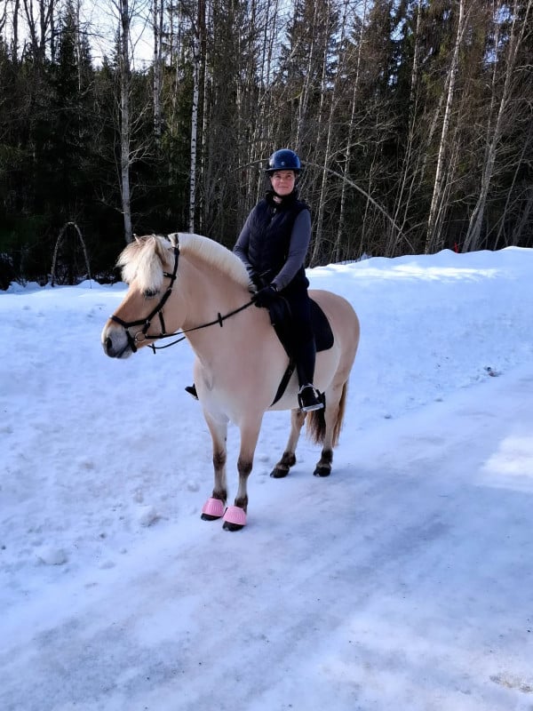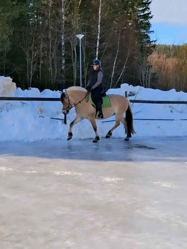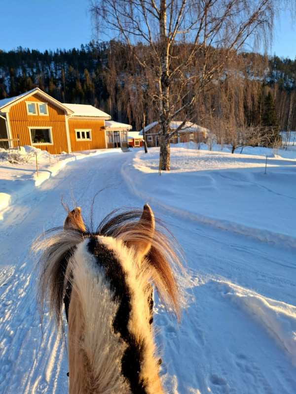 Underlaget ute har varit bra i stort sett hela vintern men nu töar det friskt så snart kommer det att bli mycket skritt efter asfalten igen. Men det kan jag ta, bara våren kommer. Hästarna är jättefina alla tre. Izabell har ridit här tre dagar i veckan. En dag rider hon dressyr på Vivan och två rider hon ut på Tingla. Ellinor och jag har fortsatt med våra helgturer och hon rider alltid Irma då Irma inte har nån annan medryttare nu. Så rullar jag runt på alla tre. En vanlig vecka trimmar jag Viva och Tingla på banan ett pass var och rider ut Tingla två pass och Vivan tre pass.