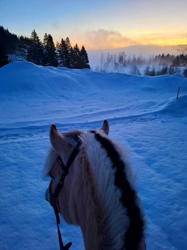 Det är den tiden på året man är bakbunden till vädret. Den tiden man undrar om det är värt det mellan varven. Förra veckan då ridbanan fortfarande var oskottad och Julia lämnade återbud på ridning kändes det som läge att ge upp för ett tag. Ja, hela gården var rätt oskottad eftersom vår traktor har något strul med filter/tankar. Den startar snällt och går fint en stund tills den plötsligt tappar kraft och stendör. Detta sker ibland på ett dåligt ställe som gårdens uppfart så man inte kommer ut med andra fordon. Den ska servas men innan detta skett har vi skottat med snöslungan och det är väldigt stora ytor att skotta med slunga så det blir ju därefter. Tungt och moddigt att köra skottkärran med skit då man mockar. Men så kom Izabells pappa Henke förbi förra helgen och hjälpte oss skotta upp både gårdsplan och ridbana och då kändes det lite ljusare igen.