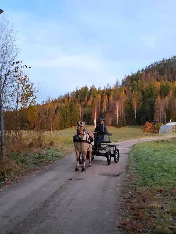 Vi har kört henne här hemma i maratonvagnen två helger i rad och även då har jag suttit med ett brett leende över hennes energi och glädje. Hon älskar verkligen att dra sin vagn. Vi får se hur mycket det blir kört i vinter. Det beror lite på hur mycket timmerbilar det kommer gå här och vilken typ av vinter vi får: is, modd eller snö. Men annars har vi en fin grund att fortsätta på när dagarna börjar bli längre igen i vår. Det känns som det hänt mycket i körningen i år och nästa års mål är bl.a. att starta precisionen på Fjord-SM. Vi är redan kvalade till den.