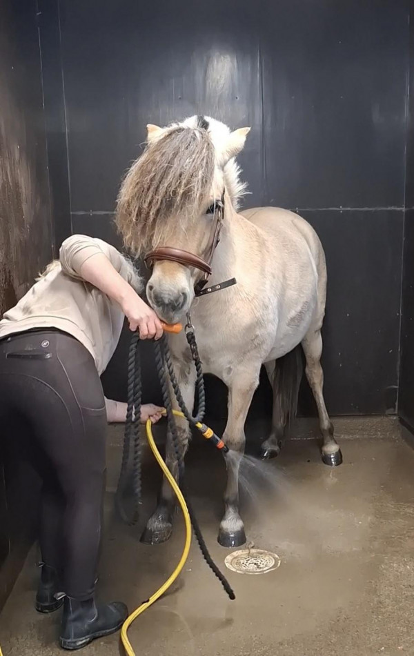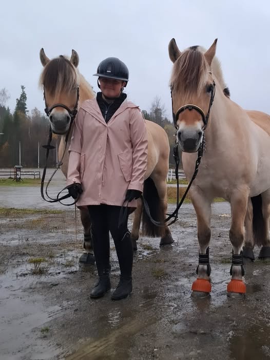 Krona är den som går i mormors fotspår. Ellinor och jag lasttränade henne i helgen. Tingla gick först genom släpet som ett föredöme. Krona som först var lite tveksam blev sedan ivrig och galopperade genom släpet med mig i en lina. Ska man göra det ska man göra det ordentligt tycker Krona. Vi gjorde om det hela och då gick det lite lugnare. Annars är hon väldigt duktig i all bashantering. Superduktig att spola benen och även kroppen på. Vi har lösgalopperat och kört lite ”följa John” och det går fint. Jag hoppas hinna tömköra lite till innan snön kommer.